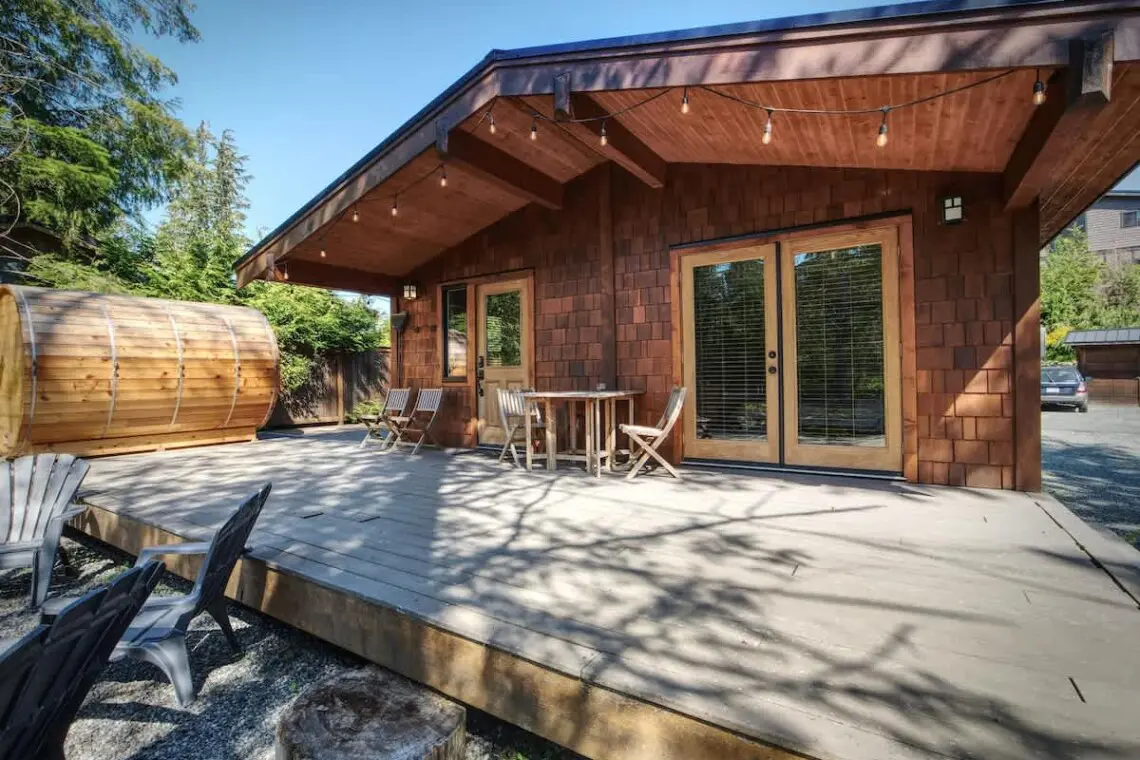 Private Sauna, pet friendly. The cottage can sleep up to 4 guests with a queen-size bed & a pull-out sofa in the family room.