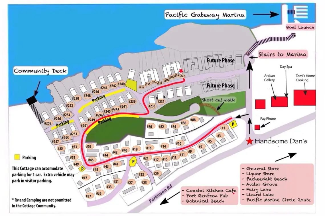 PARKING: Boat and trailer can be park at the marina for a small fee. Please call (250) 412-5509 for reservation.