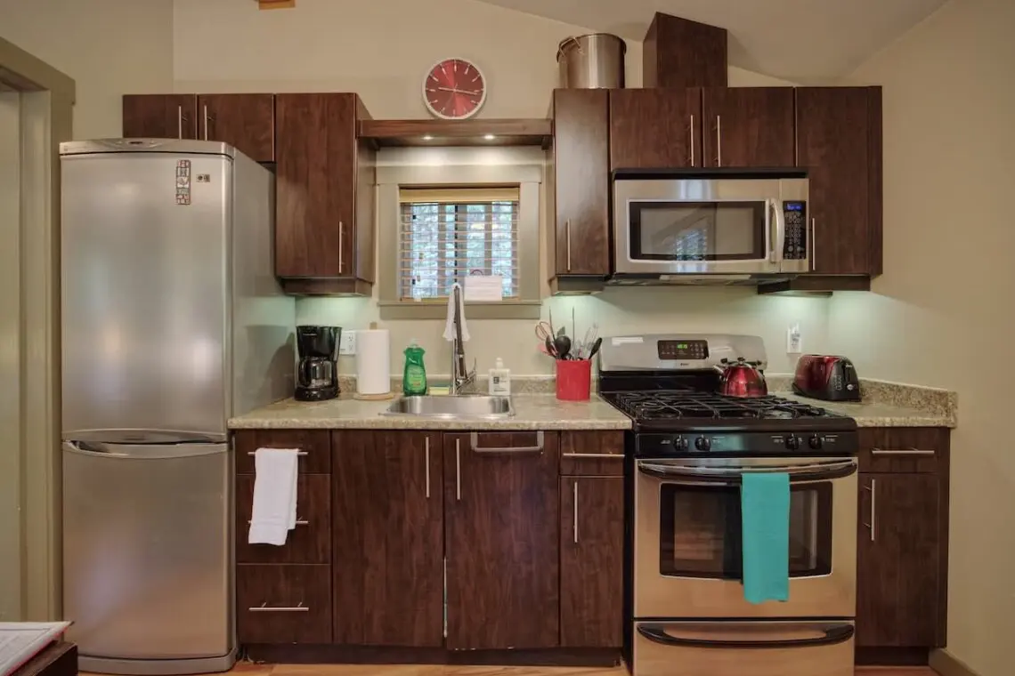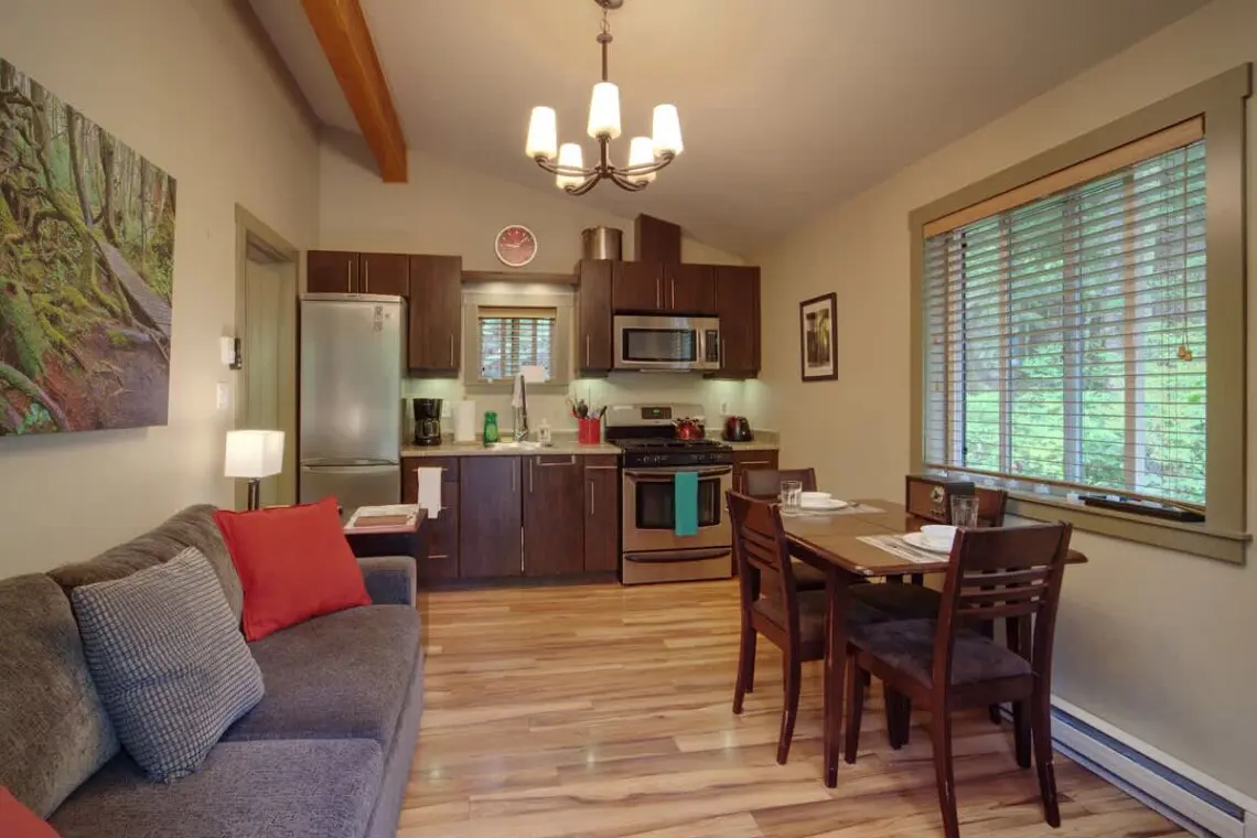 There’s no public transit here. While you can walk to most amenities within Port Renfrew, you’ll need a vehicle if you wish to get to Botanical Beach, Avatar Grove, etc. Restaurants are all within a 10-15 minute walking distance