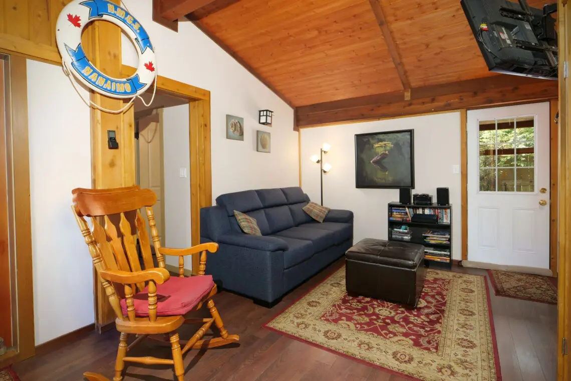Just a 10 minute walk from the cottages brings you to the marina, ideal for fishing or enjoying the sea air. Tomi’s Home Cooking is conveniently located across the street, and The Coastal Kitchen Café and The Renfrew Pub are just a 10-minute walk away if you’re in the mood for dining out. A general store, offering beer, wine, and other essentials, is about 1 km from the cottage on Parkinson Road. It’s also a good idea to stock up on groceries at Sooke or Cowichan Lake if you’re coming from that direction.